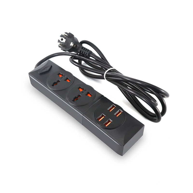 Цей фільтр живлення здатний забезпечити живленням одночасно 4 мобільні пристрої та 2 побутові прилади. Для заряджання мобільних пристроїв доступні 4 USB-роз'єми. Потужне USB-заряджання забезпечує гарантоване максимальне навантаження на всі порти до 3.4 A, що дає змогу заряджати одночасно до 4 мобільних пристроїв: смартфони, планшети, зовнішні батареї та інші пристрої, що підтримують заряджання від USB. Інтелектуальна мікросхема USB Auto ID автоматично розпізнає тип під'єднаного USB-пристрою, забезпечуючи високу сумісність заряджання. Пристрій обладнаний двома універсальними роз'ємами для всіх поширених типів вилок, включно з американськими, англійськими та російськими. Фільтр має заземлення й захист від перенапруги та витримує навантаження до 2500 Вт. Кнопка вимкнення загального живлення дає змогу швидко вимкнути живлення.