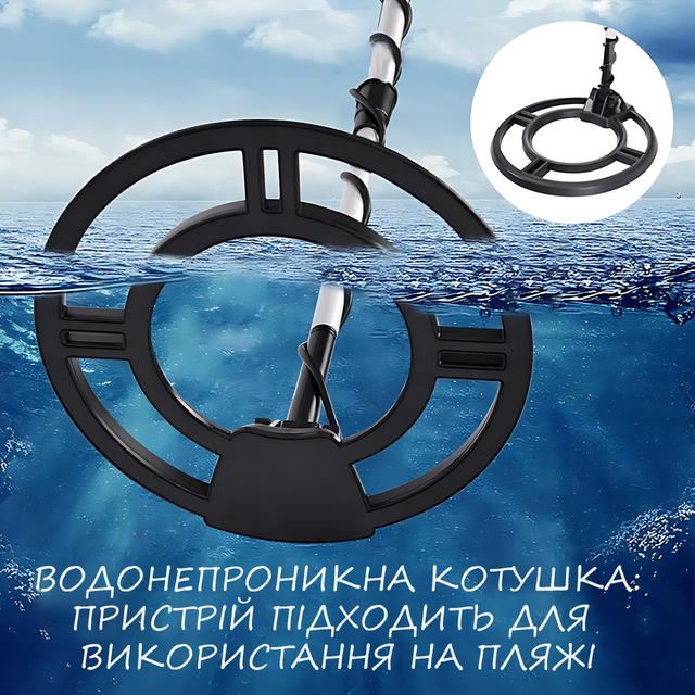 Застосування: пошук золота, виявлення в пустелях, військові потреби, перевірка безпеки, археологія, полювання за скарбами, пошук на пляжах. Завдяки водонепроникній котушці можна використовувати на березі.