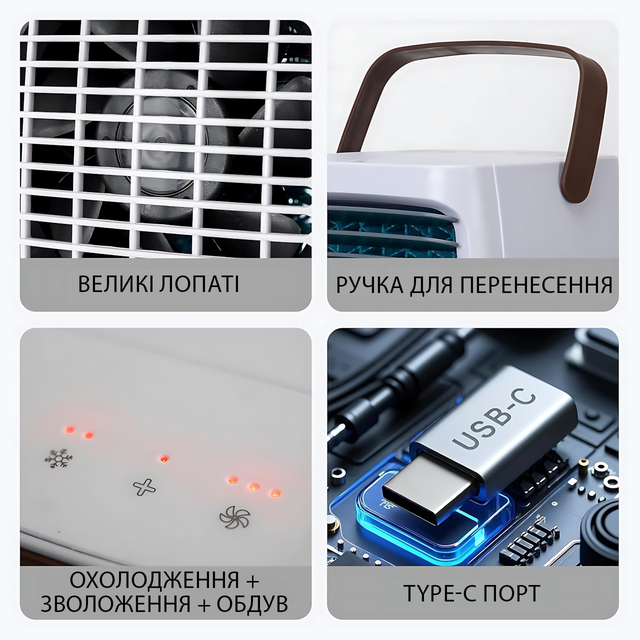 - Тип: автономний мінікондиціонер/мобільний охолоджувач повітря;