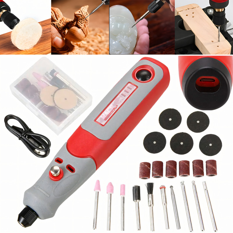 USB-перезаряджуваний електричний акумуляторний набір для шліфування з 22 предметів — це універсальний інструмент із різноманітними функціями для роботи з дрібними деталями. До комплекту входять мінідриль, мініфрезер і гравер, що робить його ідеальним набором для як аматорів, так і професіоналів-майстрів. Цей комплект являє собою зручне та потужне рішення для тих, хто шукає компактний і багатофункціональний інструмент для дрібної роботи та творчості. Завдяки можливості заряджання через USB, він також зручний для використання в різних умовах.