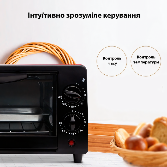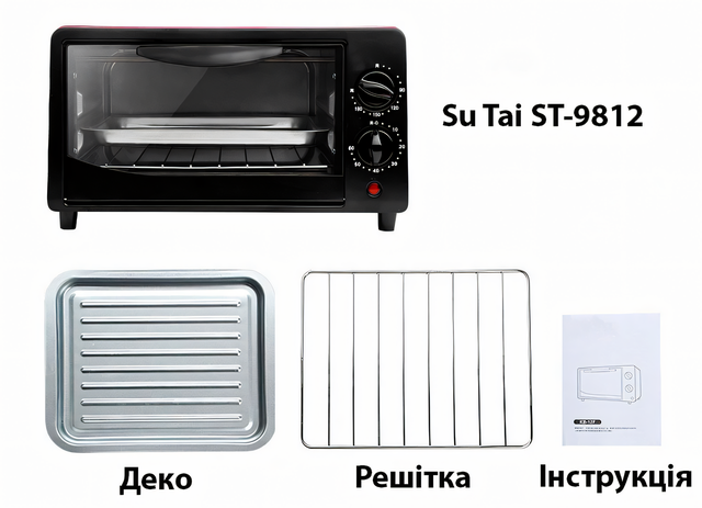 Мініелектро піч Su Tai ST-9812 обсягом 12 л, з таймером і механічним керуванням температур до 230°, 700 Вт