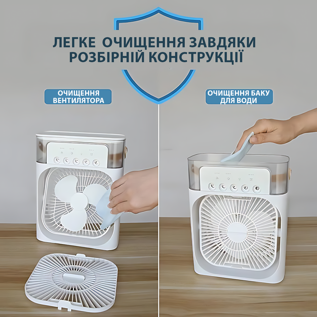 - ???? Лід — найкращий друг вашого комфорту — додайте лід у воду, і ваш вентилятор стане справжнім мінікондиціонером, що створює неймовірне охолодження.