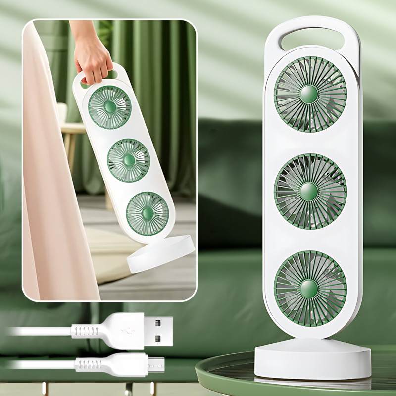 ???? Вентилятор триголовковий USB, що перезаряджається AND LY-856/S-31 — прохолода, яка б'є відразу з трьох сторін!