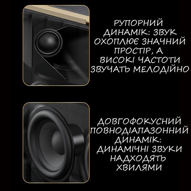- Ретродизайн: Стильний зовнішній вигляд колонки гармонійно вписується в будь-який інтер'єр, додаючи естетичної цінності;