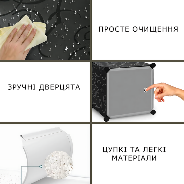- Багатофункціональність: підходить для зберігання одягу, взуття, канцелярії, іграшок та інших дрібниць.