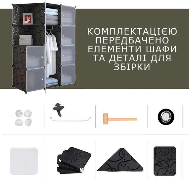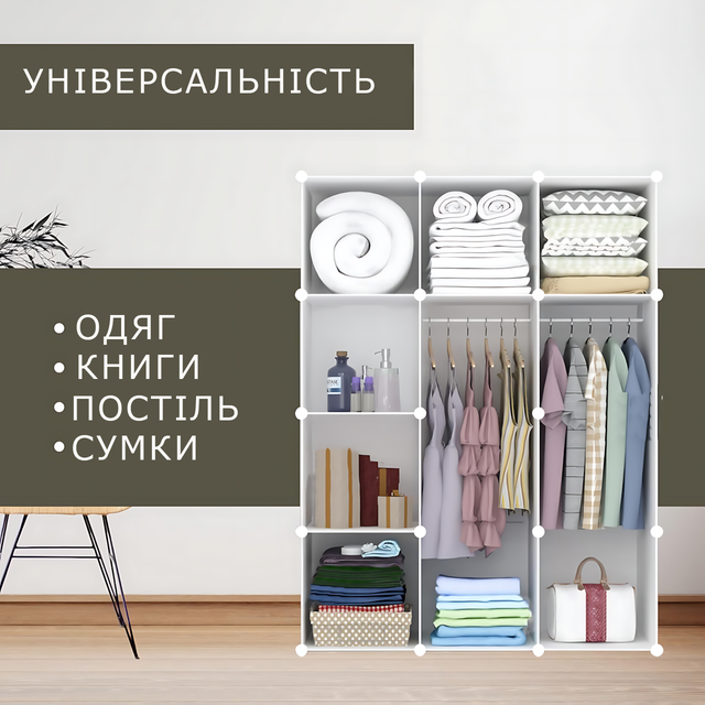 Модульна шафа-органайзер для одягу 10166 з 12 пластикових модулів, шафа-конструктор, 110 х 37 х 145 см
