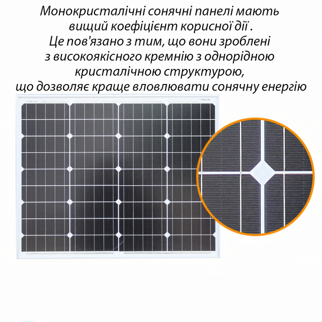 - Монокристалічна сонячна панель MONO-50W (17.5 V);