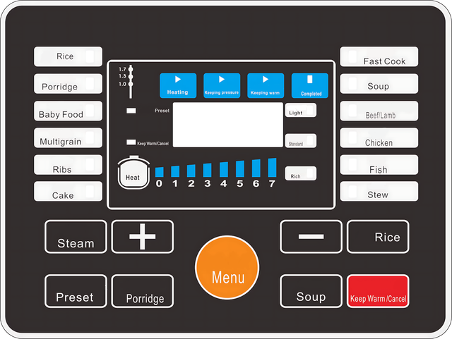 Ти можеш варити холодець на всю рідню, робити заготівки на зиму, запікати курку цілком або просто варити борщ «як мама в неділя». А можна й простіше — розігріти вечерю, приготувати грічку, зварити суп на обід. Варіантів — море, тому що в багатофункціональному меню — десятки програм: від йогурту до випічки.