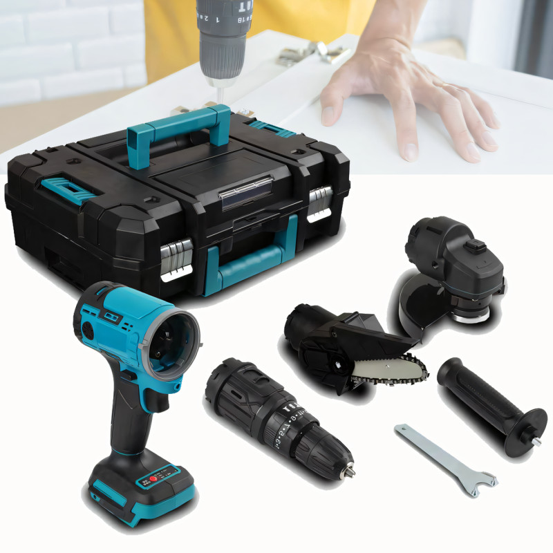 Набір акумуляторних електроінструментів 3 в 1: пилка, болгарка, шурупокрут, насадки на шурупокрут
