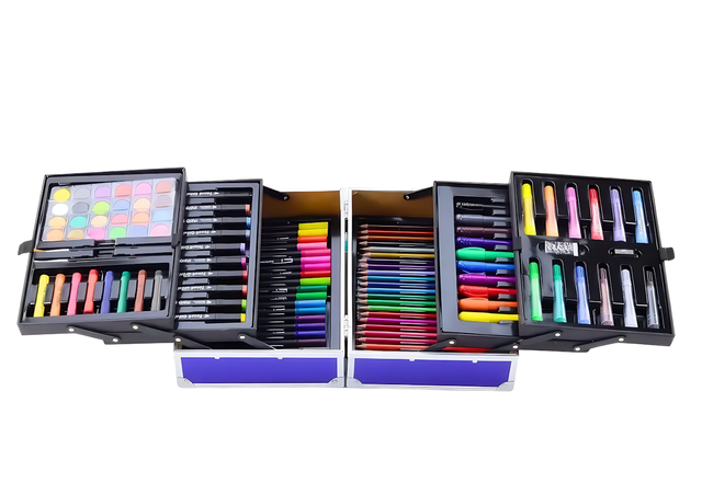 - Різноманітність матеріалів: Від кольорових олівців і маркерів до олійних пастелей і акварелей — цей набір надає широкий вибір художніх інструментів для дослідження різних стилів і технік;