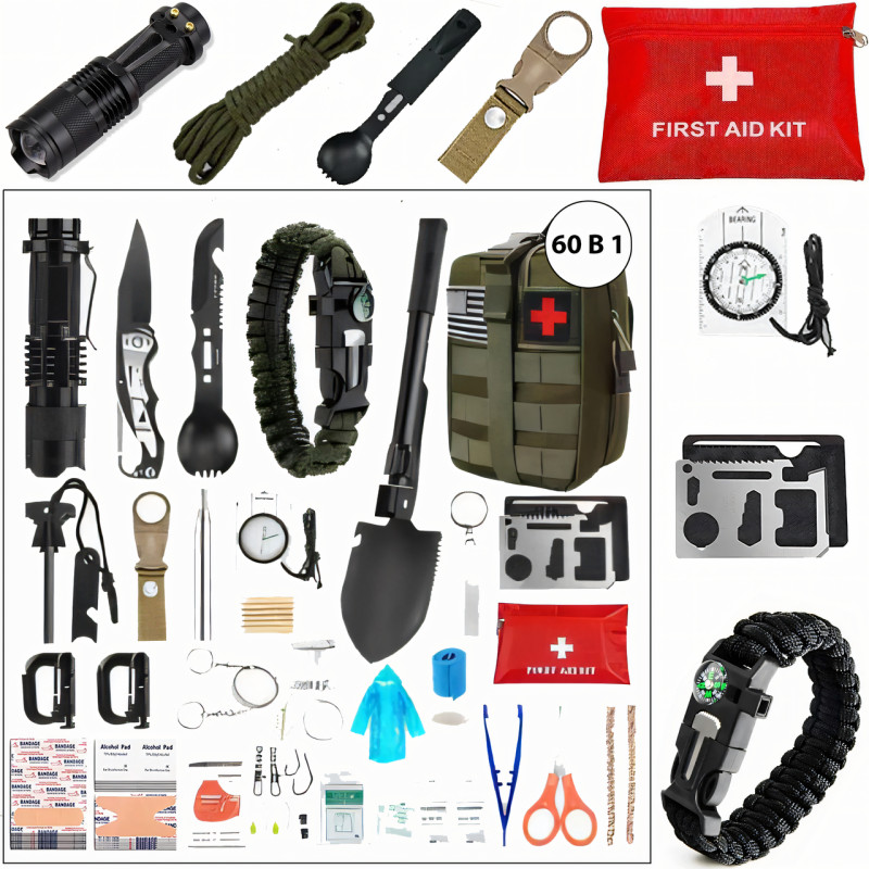 Набір для виживання 60 в 1, універсальний набір для туристів і військових, мультитул з аптечкою