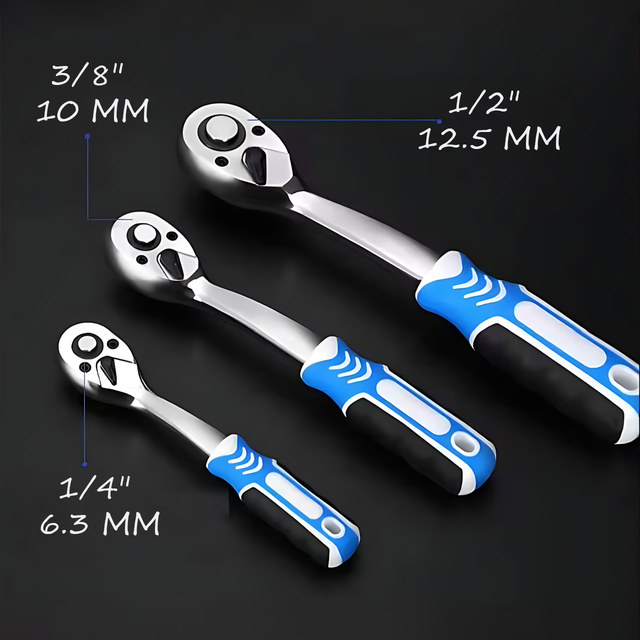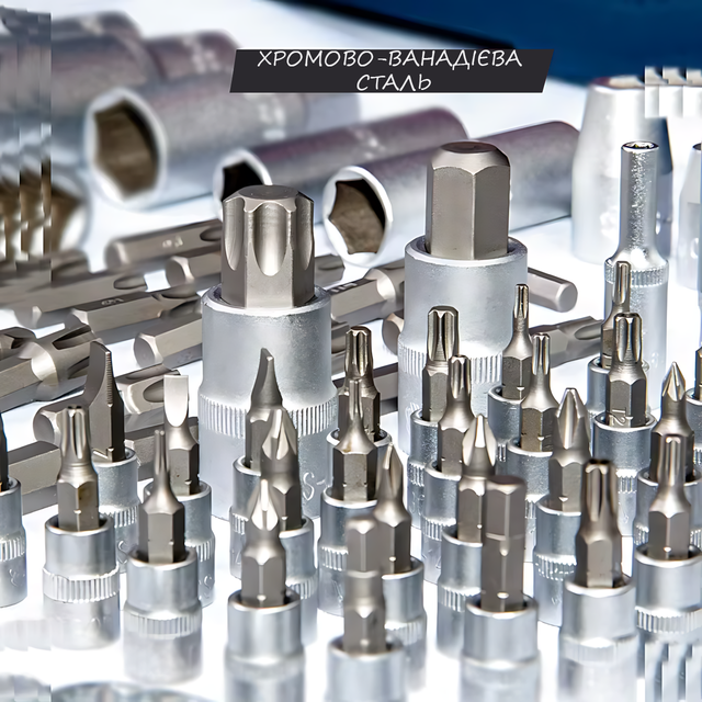 - Універсальність: Набір містить тріскачки та приладдя для трьох різних приводів;