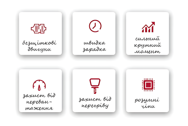 Ергономічний дизайн із прогумованими ручками робить роботу зручною. Навіть (особливо) у разі тривалого використання. Підсвітка й індикатори заряду допоможуть працювати з максимальним комфортом і безпекою.
