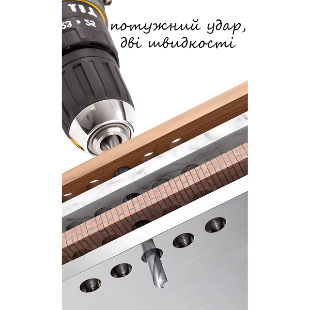 - ⚡ Шурупокрут із двома швидкостями та ударним механізмом — свердлить, закручує, відкручує, ніби це магія.