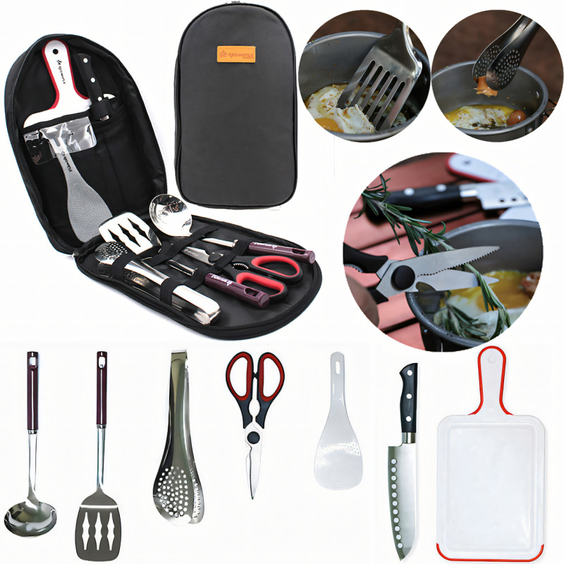 - Універсальність і функціональність: До цього набору входять усі необхідні інструменти для приготування їжі на природі. Ніж, ополоник, ножиці, лопатка, щипці, ложка та обробна дошка в комплекті дають змогу вам готувати широкий спектр страв, від простих закусок до повноцінних обідів, завершуючи всі ваші уявлення в їжі;