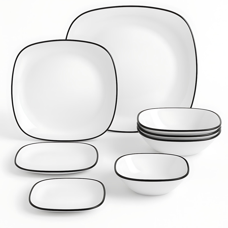 Набір посуду Leebull HZ-3629 на 24 предмети — квадратні тарілки та глибокі миски, білий сервіз 6 персон