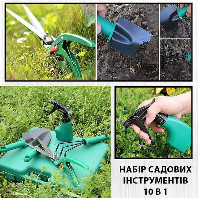 Набір садових інструментів у кейсі — 10 надійних помічників, які копають, пухлять і не задають зайвих питань