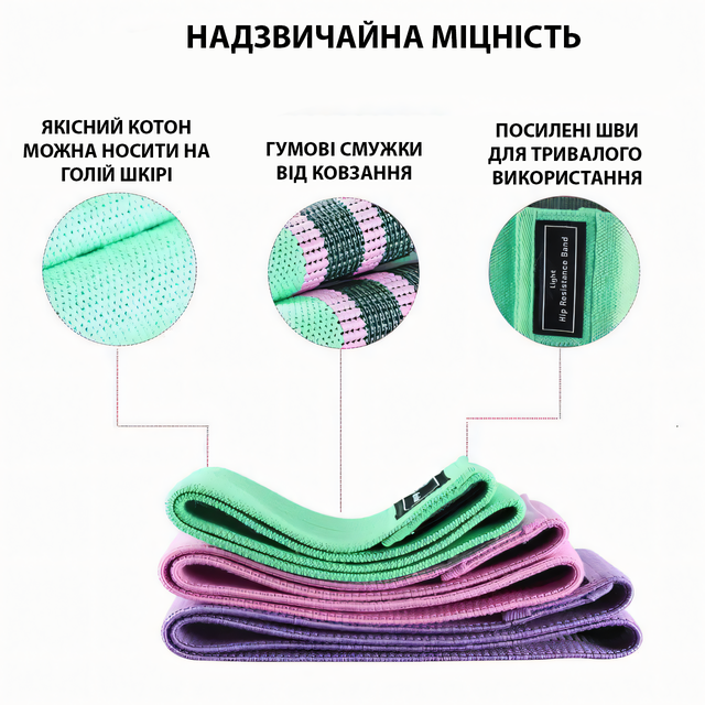 Набір тканинних фітнес-гумок Luting Hip resistance bands 3 штуки, легкий, середній і високий опір