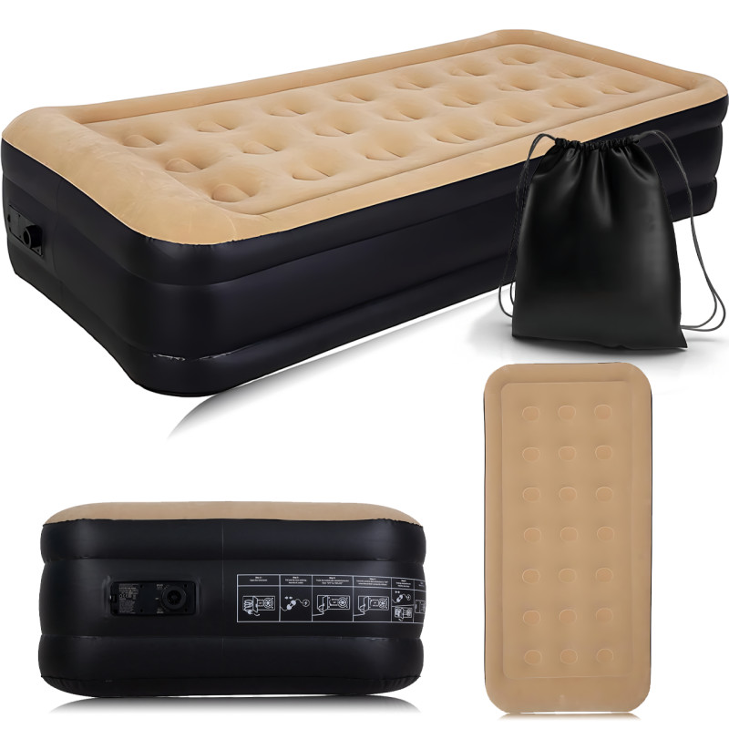 Надувне ліжко 190×90×40 см з USB-насосом і чохлом, ПВХ + поліестер, складане, гіпоалергенне, бежеве