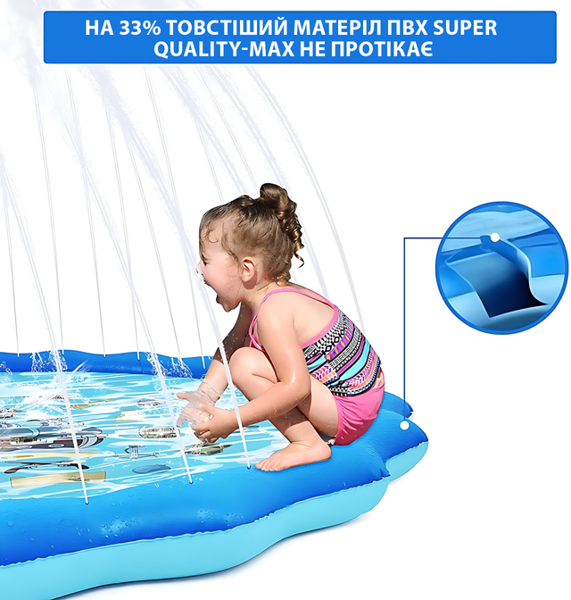 - Тип: Надувний водяний килимок із фонтаном/мінібасейн;