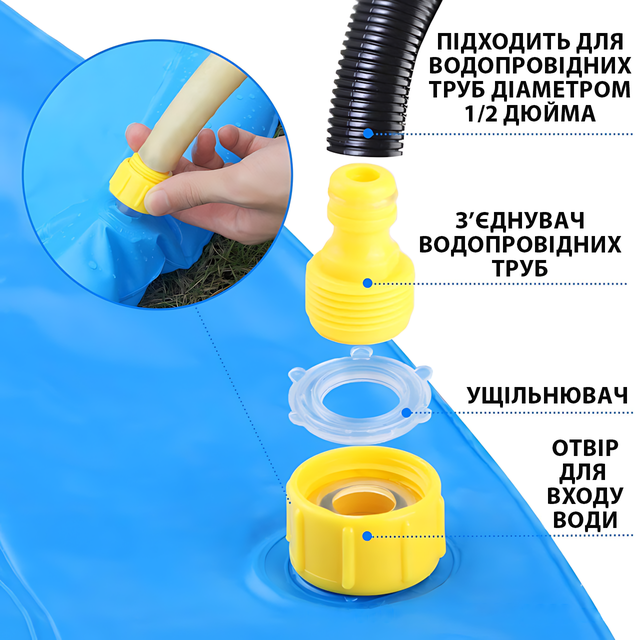 - ???? Просте під'єднання: потрібен тільки стандартний садовий шланг — жодних насосів або батарейок!