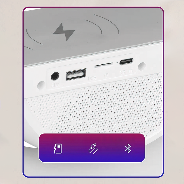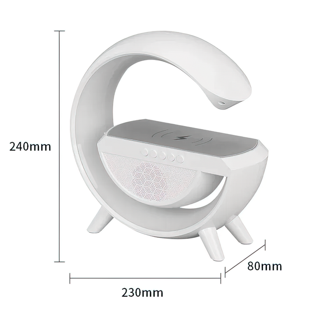 - Багатофункціональність: об'єднує в собі кілька корисних функцій, включно з бездротовим заряджанням, RGB-підсвіткою, Bluetooth-колонкою і навіть будильником. Вона є ідеальним аксесуаром для вашого столу або приліжкової тумбочки, надаючи безліч можливостей в одному пристрої;