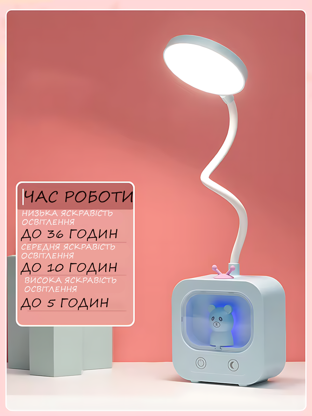 Настільна лампа "Ведмедик", нічник із сенсорним керуванням акумулятором, гнучкою стійкою і 3 режимами світла