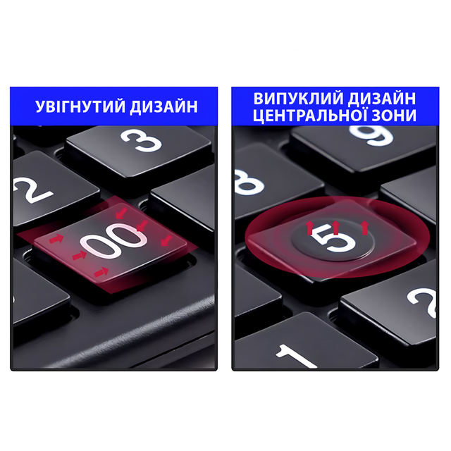 - Зручність використання — великий 12-розрядний екран і простота видалення помилок. Все для вашого комфорту.