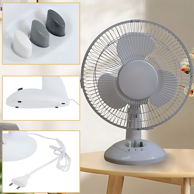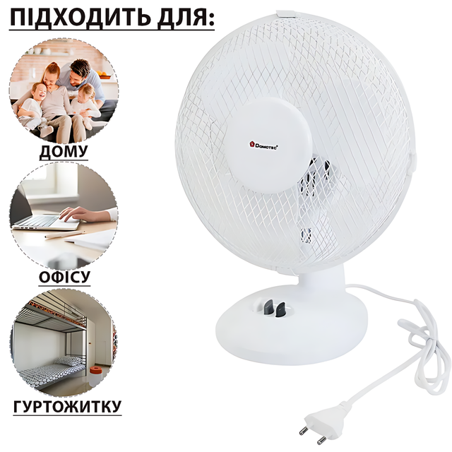 Настільний вентилятор Domotec MS-1624 Fan 9", 25 Вт, 2 швидкості, поворот і нахил, знімна решітка, білий
