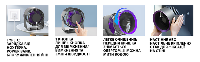 - ✅ Освіжний бриз будь-де — працює від акумулятора та USB