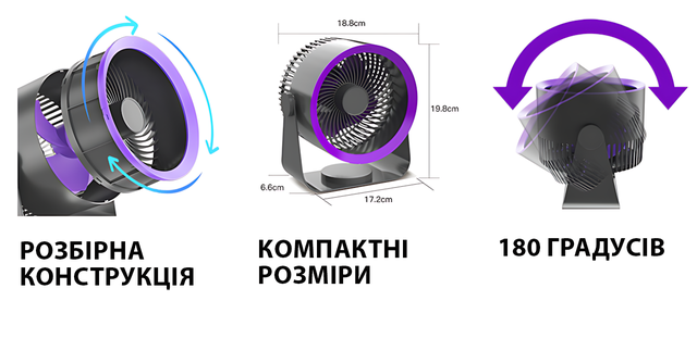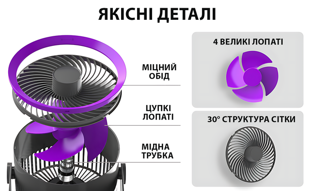 - ✅ 3 режими швидкості — від легкого вітерця до потужного охолодження