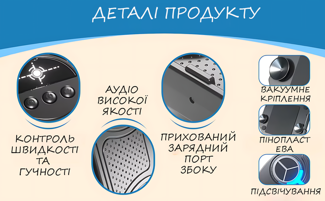 - Матеріал: ПВХ, ABS + піна + електронні компоненти;