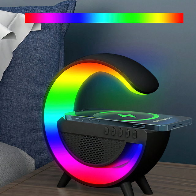 Настільна лампа KР-3431 RGB 3в1 з бездротовою зарядкою, акумуляторна, 15 Вт і Bluetooth колонкою
