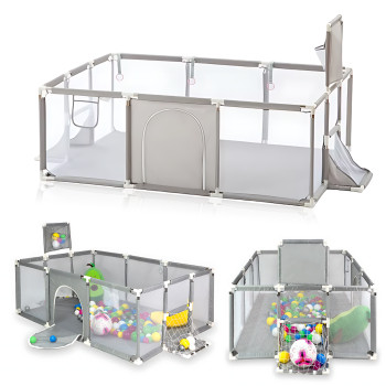Дитячий манеж NX-21 (180×120 см) — ігровий сухий басейн із баскетбольним кільцем і воротами, сітчаст..