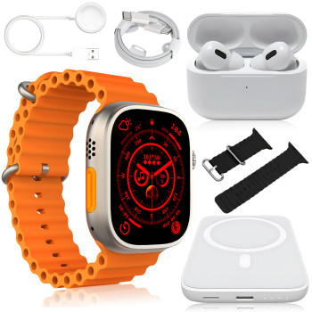 Подарунковий набір 4-в-1: смарт-годинник Smart Watch RM22 з функцією дзвінків + бездротові навушники..