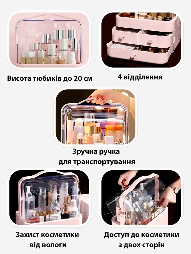 - Ручка для транспортування: з нею переносити органайзер для косметики набагато зручніше.