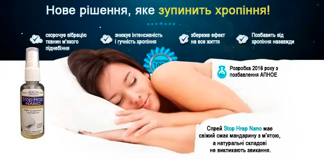 Проблема сильного, виснажливого хропіння, яке заважає отримати повноцінний відпочинок, знайома кожному. Але особливо це стосується тих, хто перескочив рубіж 35 років, адже освіта такої недуги насамперед пов'язана із віковими змінами. Хропіння провокує неприємні емоції, переростаючи у сімейну трагедію. Звичайно, в цьому випадку можна вдатися до операційного втручання, але чи буде воно таке ефективне, та й вартість залишає бажати кращого. Але не варто впадати у відчай, адже вчені вже давно готові вам запропонувати революційну цікаву новинку — Stop Hrap Nano, яка придбала серця багатьох завдяки своїй ефективності.