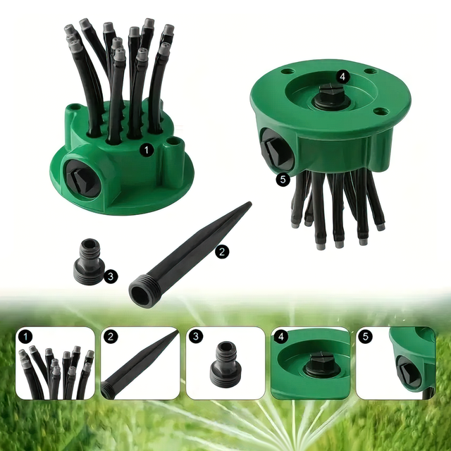 Представляємо вам спринклерний зрошувач Sprinklers 360 — ідеальне рішення для ефективного та рівномірного поливання вашого газону або городу. Цей дощівник забезпечує оптимальний розподіл води, а гнучкі шланги дають змогу вам легко спрямовувати струмені дощівників, адаптуючи поливання під конкретні потреби. Sprinklers 360 охоплює всю зону на 360 градусів, забезпечуючи рівномірне покриття водою до 35 кв. метрів. Гнучкі шланги дають змогу точно спрямовувати струмені дощівників, забезпечуючи поливання навіть у важкодоступних місцях. Цей спринклер також може використовуватися для охолодження даху будинку в спекотні дні, створюючи комфорт у вашому дворі. Виготовлений із міцного ABS-пластику, Sprinklers 360 забезпечує довговічність і надійність у використанні. Проста система настроювання робить його легким у використанні та адаптації під вимоги вашого саду або газону.
