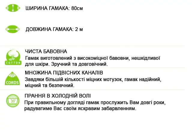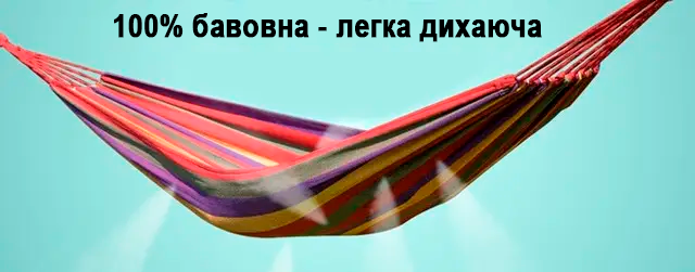 забезпечать рівномірний розподіл ваги. Цей яскравий гамак буде доповнювати красу Вашого саду. Відпочинок в гамаку подарує Вам особливе відчуття свободи і невагомості, дозволить розслабитися м'язам спини і шиї, відчути душевний комфорт.