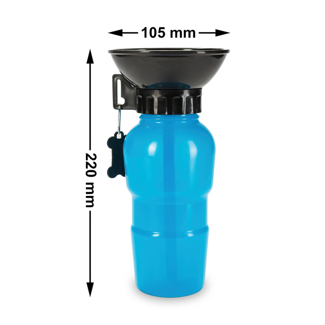 - Інноваційний дизайн: обладнана спеціальною кришкою, яка під час натискання на пляшку перетворюється на зручну миску. Це дає змогу вашій тварині легко та зручно пити воду в будь-якій ситуації, без потреби носити додаткові миски;