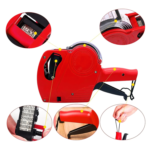 EOS5500 дає змогу наносити інформацію у формі 8 символів, і для цього використовується рухомий набірний валик. Ви легко можете налаштувати потрібні символи та цифри, переміщуючи валик вліво або вправо, щоб вибрати потрібний розряд, а потім за допомогою прокручування коліщатка встановити бажаний символ або цифру. Кожен розряд містить числа від 0 до 9 і додаткові символи. Цей пістолет розроблений спеціально для використання з прайс-етикетками розміром 21х12 мм, що робить його ідеальним інструментом для магазинів, складів та інших підприємств, де важливо чітко та чисто маркувати товари. EOS5500 надає вам можливість робити це професійно й ефективно.