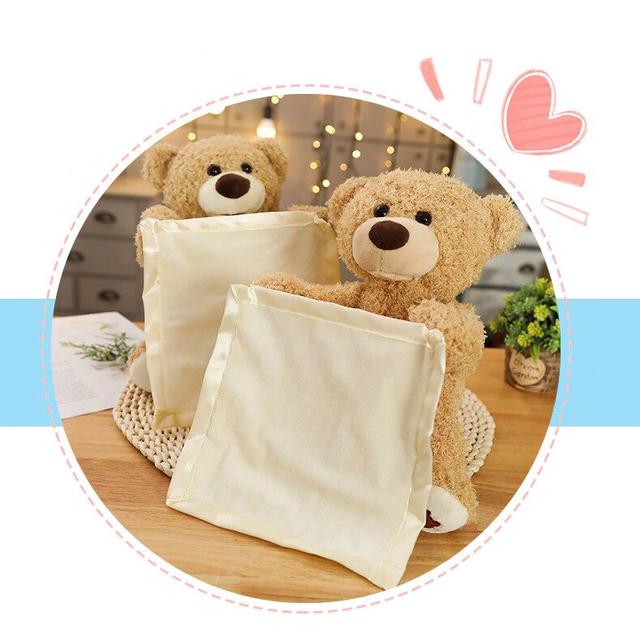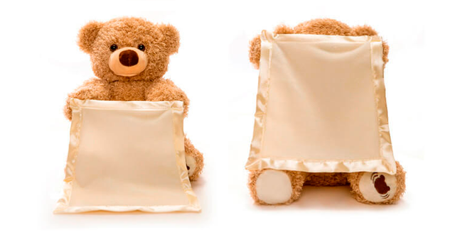 Малюк буде сміятися від захвату, коли ведмедик буде піднімати і опускати свою ковдру, відтворюючи інтерактивну гру в хованки.