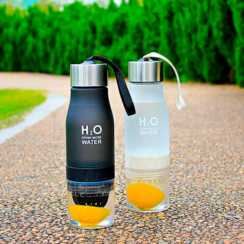 Пляшка для води та напоїв H2O Water Bottle з соковижималкою однозначно виділяється на тлі інших пляшок саморобного лимонаду. Як і всі інші спортивні професійні пляшки для води, H2O Water Bottle виготовлена з ЕКО-пластику високої якості. Ця пляшка легка, стильна, практична і, що важливо, прослужить Вам досить довго.