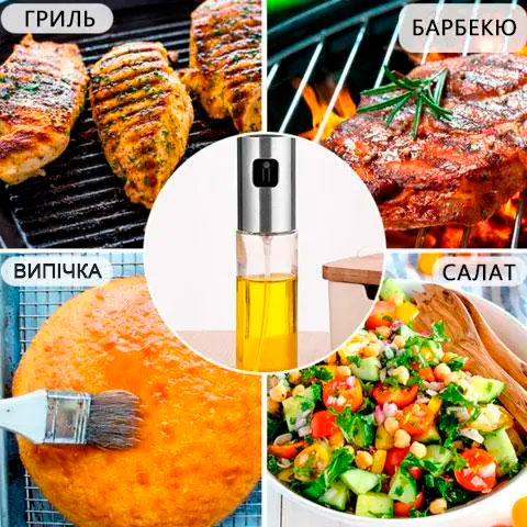 З розпилювачем ви забудете про надмірні жирні калюжі на сковороді або деку при смаженні млинців, омлетів, оладок. Зможете дозовано заправляти салати маслом і оцтом, розпорошувати масло на м'ясо та рибу для створення апетитною скоринки «як в ресторані».
