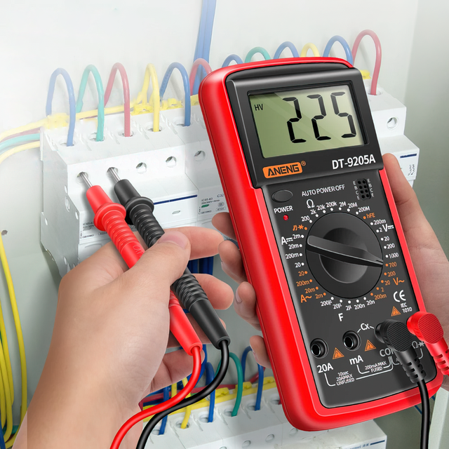 Цифровий мультиметр DT-9205A, обладнаний функцією автоматичного вимкнення (ток до 20 А), є універсальним тестером, що застосовується для перевірки та відновлення різноманітної техніки та обладнання. Пристрій має міцний пластиковий корпус з особливим прогумованим чохлом, що забезпечує додатковий захист. Яскравий і контрастний РК-дисплей зображає всі необхідні дані з ясністю. Розширений діапазон вимірювань містить струм до 20 А, напругу до 1000 В і опір до 200 МОм. Пластикова підставка на задній стороні корпусу забезпечує зручне розміщення приладу під час роботи. Надійна та довговічна конструкція, а також доступна ціна роблять цей мультиметр оптимальним вибором для професіоналів і ентузіастів, що працюють ремонтними роботами.
