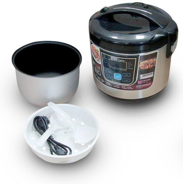 Мультиварка Opera Digital OD-166 має 12 автоматичних програм у своєму арсеналі, які швидко допомагають у виборі оптимальних налаштувань для приготування тієї чи іншої страви. Ви зможете готувати каші, супи, різні види плову, холодці та багато іншого. Також є можливість готувати випічку і хліб, гасити або смажити страви. Не обійшлося і без функцій для прихильників здорового харчування – можна готувати на пару чи робити йогурти.