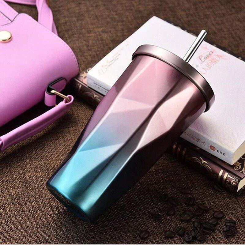 Термочашку з трубочкою CRISTAL StarBucks 480 мл, нержавіюча сталь, EL-503, різні кольори Purple-Blue