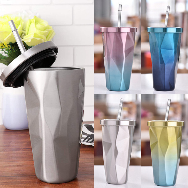 Термочашку з трубочкою CRISTAL StarBucks 480 мл, нержавіюча сталь, EL-503, різні кольори Matt Black