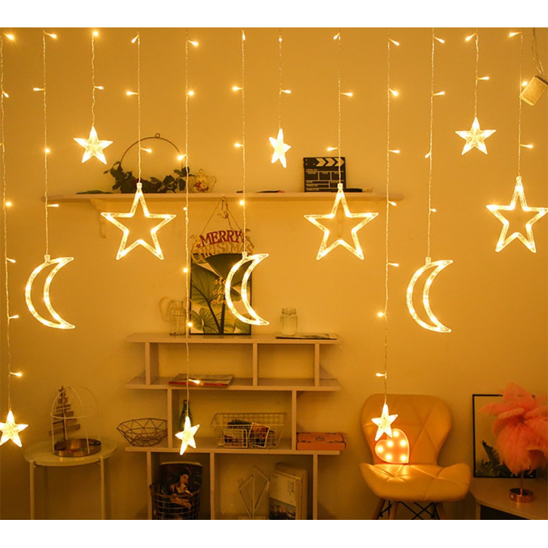 Святкова гірлянда Місяць та Зірки 12 предметів NEW YEAR, з пультом, штора, тепле жовте світло