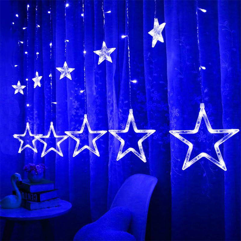 Святкова гірлянда Зірки 12 предметів NEW YEAR, з пультом, штора, блакитне світло